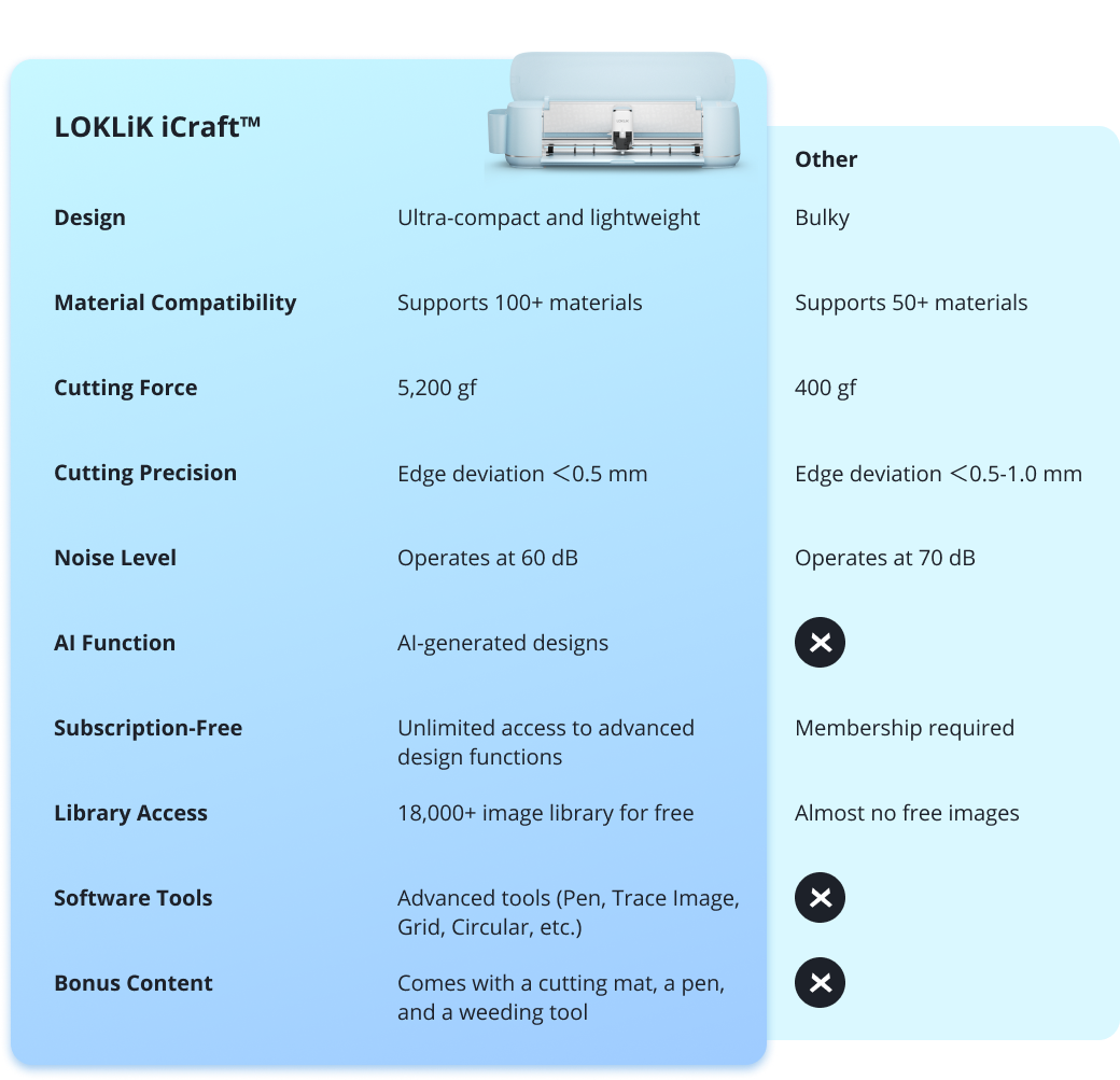 LOKLiK IdeaStudio™, our free AI-powered design software, plus a competitive number of 50,000+ ready-made images, allows every crafter to create vivid, customized designs in just seconds.