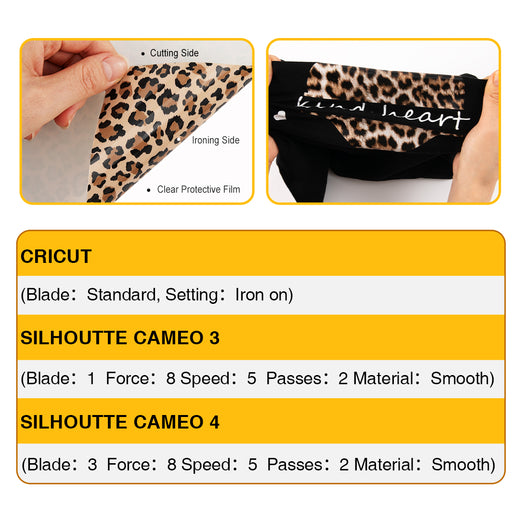 Our Animal Heat Transfer Vinyl content 7 classic printed patterns heat transfer vinyl and 1 PTFE Teflon Sheet.Good choice for Christmas, Halloween and anniversaries gift to your family or lover..Our iron on vinyl gives you a wider choice to support your creative freedom.
