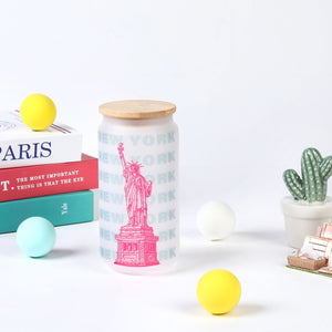 Set of four clear glass jars with wooden lids and straws, one featuring butterfly design. Buy Now