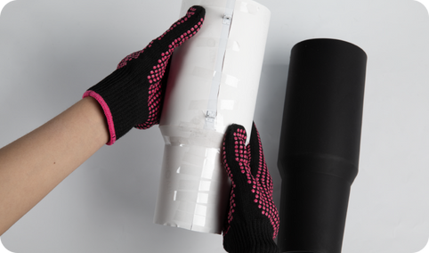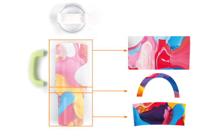 Clean and wipe the tumbler, and attach the design tightly to the tumbler with heat-resistant tape. It is recommended that the image be stuck in the order of lower, middle, and upper sections.