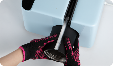 A1: Please replace the heat plate mat module when it is completely cooled down; A2: Be sure to wear heat-resistant gloves when replacing; A3: Align both rails of the module with the track marks on the device when inserting; A4: Push the pad in firmly until a “click” sound is heard.
