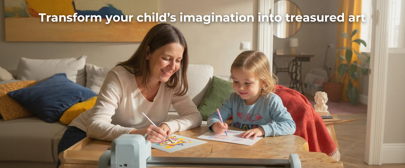With different compatible pens, the device allows for paint-by-number sketches, painting on embroidery fabric, wooden board, handwriting greeting cards, and more.