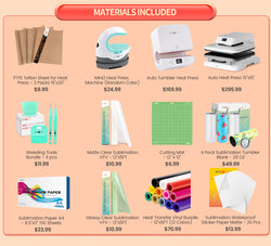 • HTVRONT Auto+Tumbler Heat Press Machine + Materials Bundle