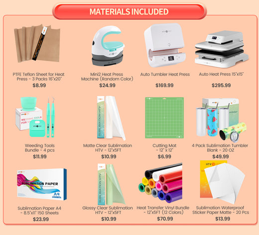 HTVRONT Auto+Tumbler Heat Press Machine + Materials Bundle